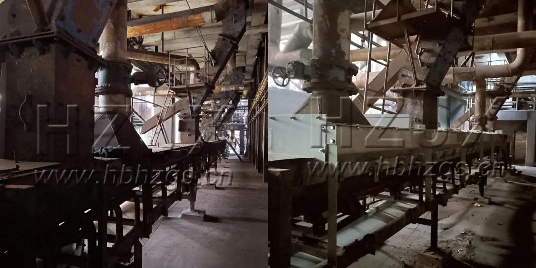 上峰水泥子公司導(dǎo)料槽改造前(左)后(右)對(duì)比