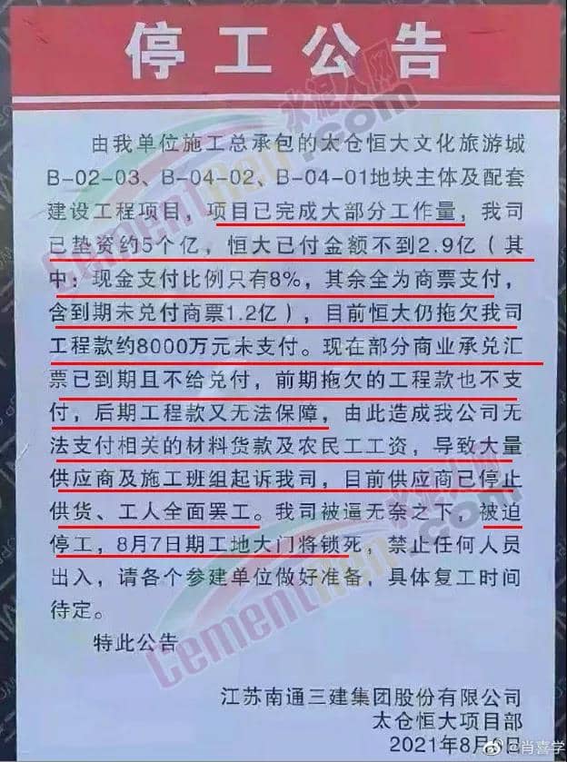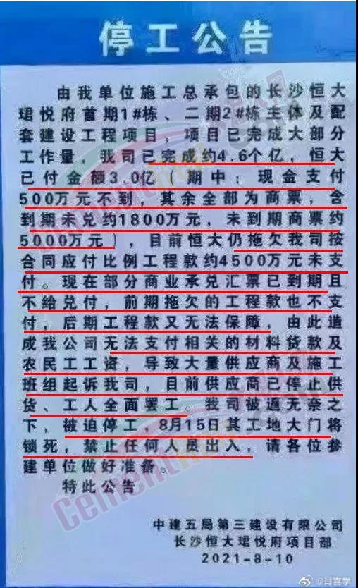材料供應商表示已暫停向恒大集團及其成員企業(yè)供貨