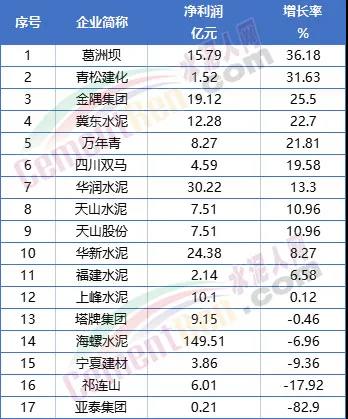 2021年上半年各水泥企業(yè)凈利潤(rùn)數(shù)據(jù)一覽