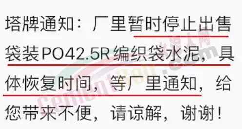塔牌水泥通知,廠里暫時(shí)停止出售袋裝PO42.5R編織袋水泥,具體恢復(fù)時(shí)間,等廠里通知。