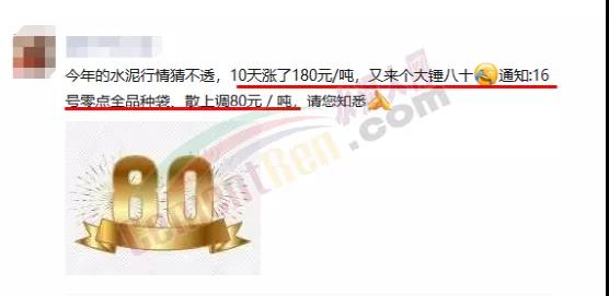 400、500、600、700、800......“天價水泥”的傳說在各地陸續(xù)上演,有經(jīng)銷商調(diào)侃稱,“這樣下去水泥要成金泥論克賣了”。商混攪拌站經(jīng)營者則說“水泥瘋了,完全就是無序漲價,一日兩漲,兩日一漲,一漲上百,完全顛覆下游企業(yè)的認(rèn)知”。