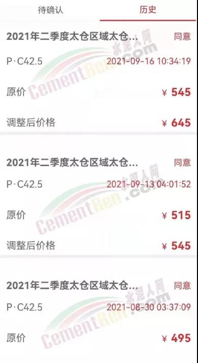 相關(guān)數(shù)據(jù)顯示,太倉海螺P.C42.5水泥從8月底的495元/噸經(jīng)歷兩次漲價后,已經(jīng)漲至9月16日的報價645元/噸,漲了150元/噸。