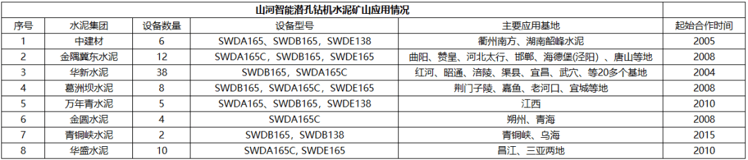 為積極應(yīng)對(duì)市場(chǎng)變化,多家水泥企業(yè)主動(dòng)轉(zhuǎn)變發(fā)展方式,其中,中建材、金隅冀東、華新、葛洲壩等水泥集團(tuán)從鉆孔爆破、礦山開采等方面著手,選用國(guó)內(nèi)鑿巖鉆機(jī)“領(lǐng)跑者”——山河智能裝備股份有限公司(以下簡(jiǎn)稱“山河智能”)的鑿巖設(shè)備,在環(huán)保、智能、提效等方面均取得了有力的突破。