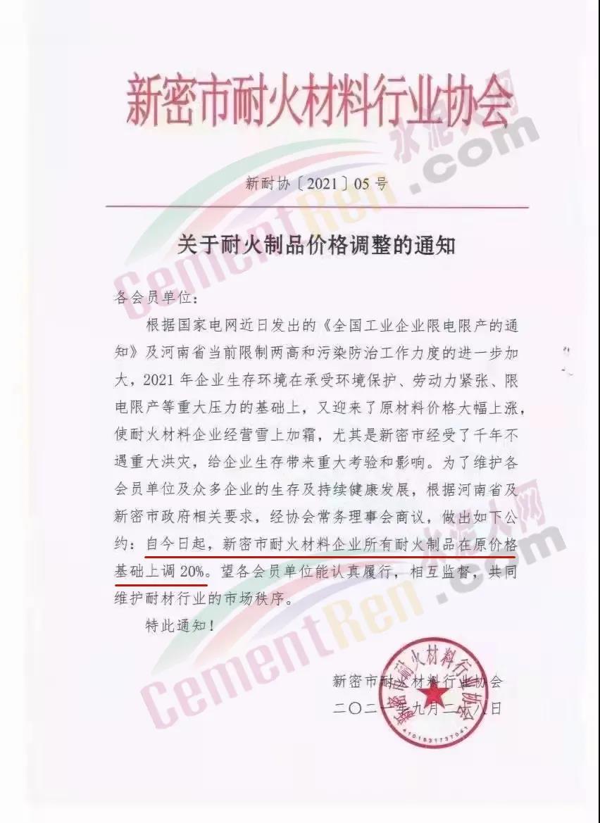 作為鋼鐵、冶金、建材等各種爐窯用耐材生產(chǎn)基地,行業(yè)知名耐材供貨商如鄭州瑞泰耐火材料、鄭州建信耐火成套、鄭州弘德新威等近百家耐材企業(yè)均分布在新密。據(jù)鄭州瑞泰相關(guān)負(fù)責(zé)人表示:此次全國(guó)大范圍的限產(chǎn)限電給公司帶來(lái)了新一輪挑戰(zhàn)和經(jīng)營(yíng)壓力,企業(yè)碳化硅供應(yīng)價(jià)較限電前最高上調(diào)14%,目前大部分碳化硅企業(yè)已拒絕報(bào)價(jià),價(jià)格預(yù)計(jì)還會(huì)再漲;河南地區(qū)自電費(fèi)調(diào)漲通知發(fā)布以來(lái),棕剛玉價(jià)格平均每噸上漲300元左右,預(yù)計(jì)國(guó)慶節(jié)后將再次上調(diào)300元/噸;另有上游供應(yīng)商透露,今年鎂砂價(jià)格預(yù)計(jì)會(huì)在去年的基礎(chǔ)上整體增長(zhǎng)30%左右……
