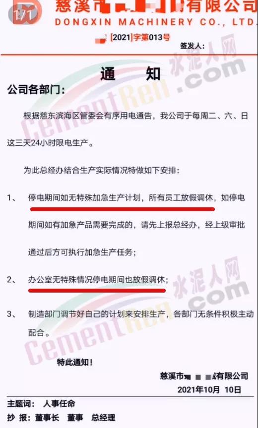 遼寧省工信廳發(fā)布《關(guān)于水泥行業(yè)熟料生產(chǎn)實(shí)施有序用電措施的通知》稱,水泥作為高耗能行業(yè),其大負(fù)荷用電特性,已在現(xiàn)階段給電網(wǎng)安全穩(wěn)定運(yùn)行帶來隱患。經(jīng)研究決定將全省水泥行業(yè)熟料生產(chǎn)用電列為第一序列實(shí)施有序用電。自2021年10月9日8時(shí)起,對全省水泥行業(yè)企業(yè)實(shí)施有序用電措施,期間水泥熟料生產(chǎn)停止用電。有序用電時(shí)間預(yù)計(jì)不低于15天,結(jié)束時(shí)間另行通知。對擅自啟動水泥熟料生產(chǎn)用電的企業(yè),要責(zé)令改正,情節(jié)嚴(yán)重的停止供電。