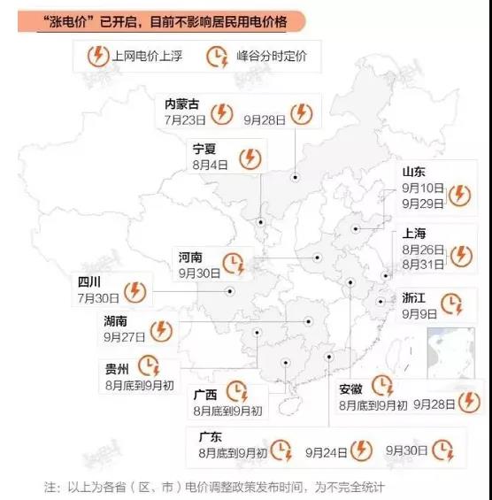 “限電潮”已波及全國20個省市,其中東北三省的居民用電也受到影響。電力供求失衡是限、停電的主要原因之一。“限電潮”之后緊跟著“漲價潮”。據不完全統(tǒng)計,自7月底以來,已有至少8個省份(自治區(qū)、直轄市)允許“上網電價”上浮,浮動范圍均不超過此前國務院要求的10%上限。6個省份(自治區(qū))通過拉大峰谷電差,引導用戶錯峰用電。目前各地的電價調整政策暫不涉及居民用電。