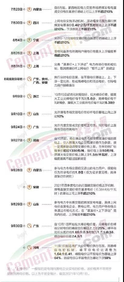 在發(fā)改委通知文件之前,因能耗雙控“限電潮”影響,部分省市地區(qū)就已率先提出“上網電價”上浮。