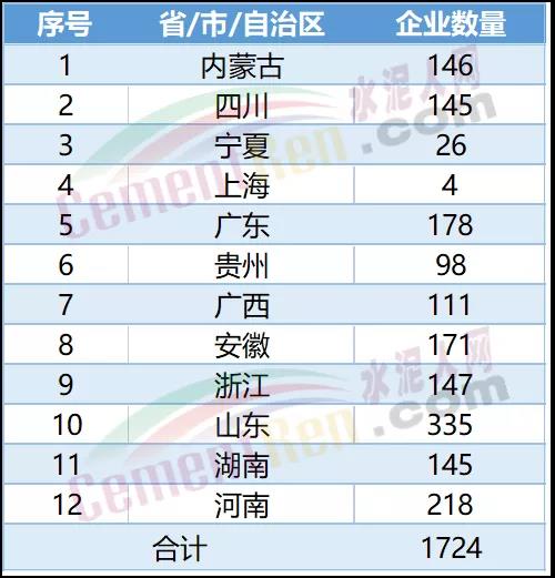 上述14個省市自治區(qū)涉及水泥企業(yè)數量近1700多家,除上海市外多是水泥大省,山東水泥企業(yè)數量達到300家以上,廣西、湖南等區(qū)域又為近兩年新建產能競相投資的重點區(qū)域。