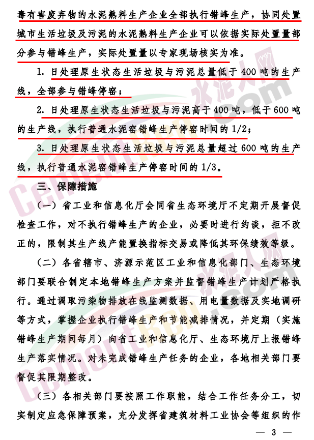 2.日處理原生狀態(tài)生活垃圾與污泥高于400噸,低于600噸的生產(chǎn)線,執(zhí)行普通水泥窯錯峰生產(chǎn)停窯時(shí)間的1/2;