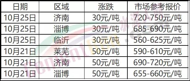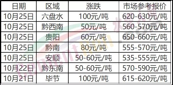 從近期各區(qū)域水泥企業(yè)報(bào)價(jià)可見,河南、貴州、山東等多區(qū)域水泥價(jià)格仍處于上漲通道。10月20日~25日貴州省內(nèi)黔西南、黔東南、黔南、安順、貴陽水泥價(jià)格上調(diào)50-80元/噸,畢節(jié)、六盤水水泥價(jià)格上調(diào)100元/噸以上。市場(chǎng)報(bào)價(jià)在500~630元/噸之間。