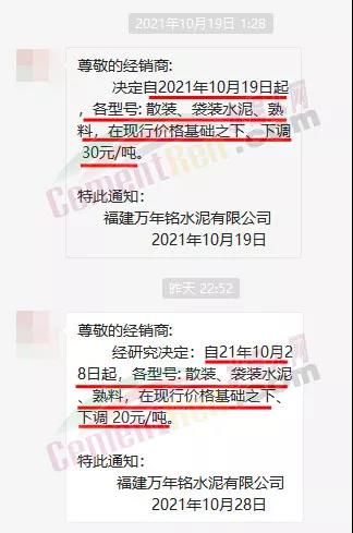 福建萬年銘水泥有限公司繼19日發(fā)通知下調(diào)各標(biāo)號水泥及熟料價格30元/噸后,于28日再次通知,下調(diào)各型號散裝、袋裝、熟料在現(xiàn)行價格基礎(chǔ)上再次下調(diào)20元/噸,10天內(nèi)累計下調(diào)50元/噸。