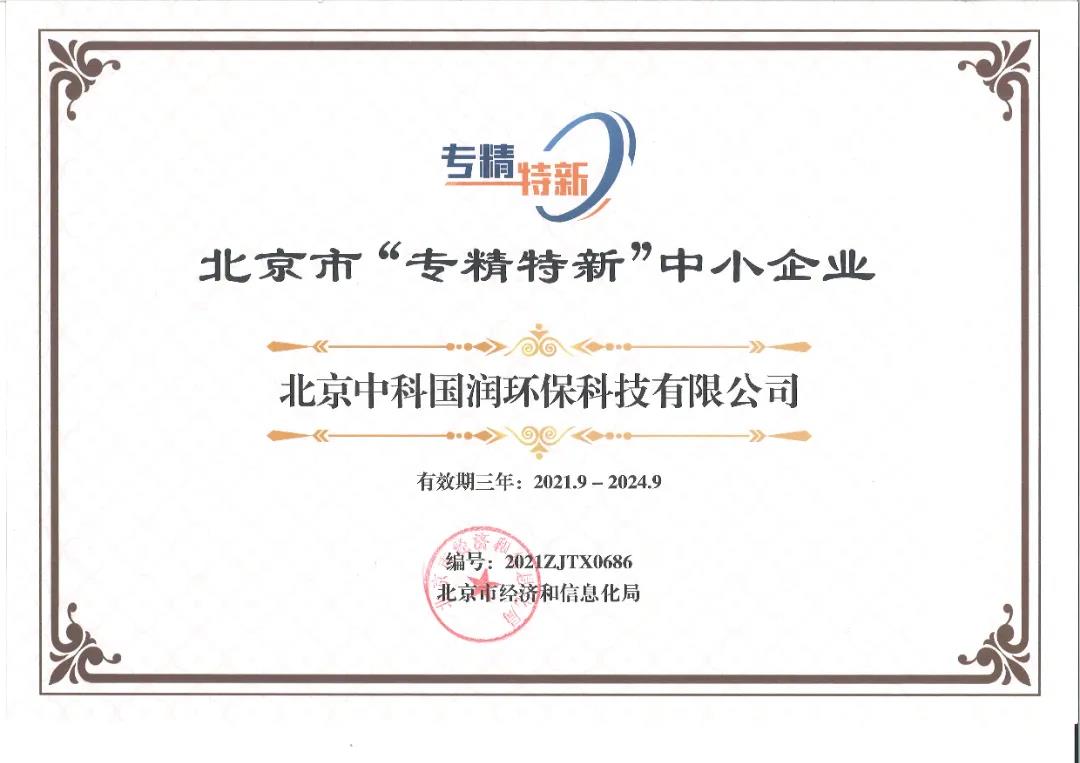 2021年9月14日,北京市經(jīng)濟(jì)和信息化局公布了北京市2021年度第五批“專精特新”中小企業(yè)名單,北京中科國潤環(huán)保科技有限公司成功入選!