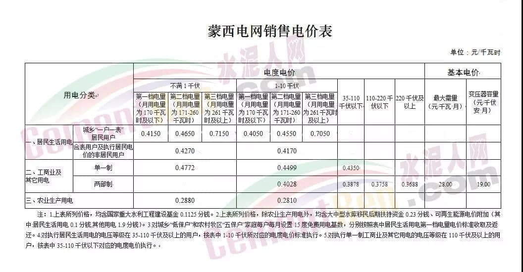 內(nèi)蒙古發(fā)改委提出《關(guān)于明確蒙西地區(qū)電力市場交易用戶保底電價(jià)的通知》中的保底電價(jià)比原有電價(jià)上浮了80%。蒙西的新保底電價(jià)如下表所示: