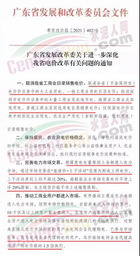 廣東省發(fā)改委印發(fā)(粵發(fā)改價(jià)格[2021)402號(hào))文件,廣東省內(nèi)所有工商業(yè)用電都進(jìn)入市場了,電價(jià)漲幅接近20%。已參與市場交易、改為電網(wǎng)企業(yè)代理購電的用戶,其價(jià)格按電網(wǎng)企業(yè)代理其他用戶購電價(jià)的的1.5倍執(zhí)行。