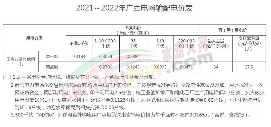 廣西發(fā)布《自治區(qū)工業(yè)和信息化廳關(guān)于進(jìn)一步調(diào)整2021年全區(qū)電力市場化交易方案的緊急通知》,在緊急通知中,高耗能企業(yè)電價(jià)直接上浮50%進(jìn)行結(jié)算。工商業(yè)及其他用電,執(zhí)行《2021-2022廣西電網(wǎng)輸配電價(jià)表》。