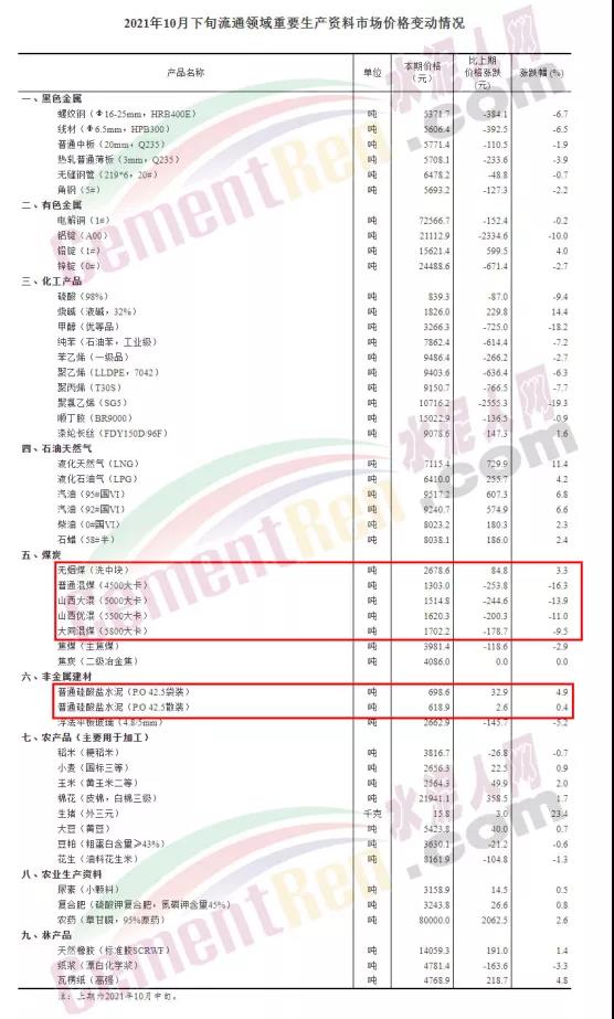從統(tǒng)計局公布的數(shù)據(jù)來看,普通混煤(4500大卡)較10月中旬價格下降253.8元/噸,降幅達16.3%;山西大混(5000大卡)、山西優(yōu)混(5500大卡)、大同混煤(5800大卡)價格分別下降244.6元/噸、200.3元/噸和178.7元/噸,降幅達13.9%、11.0%、9.5%;焦煤(主焦煤)本期價格為3981.4元/噸,較十月中旬價格下降118.6元/噸,降幅為2.9%。