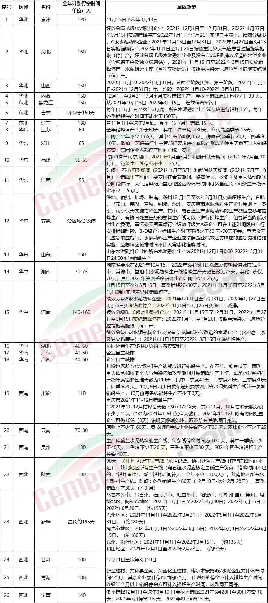 各區(qū)域錯峰生產(chǎn)時間一覽