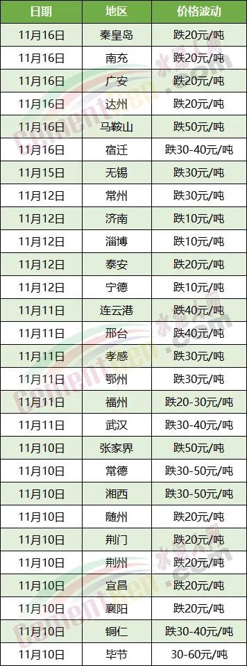 水泥消費(fèi)核心區(qū)域跌價,引發(fā)大面積的價格塌方。11月中旬以來湖南、安徽、廣西、湖北、四川、貴州、福建、山東、河北等十幾個省水泥價格陸續(xù)下跌。