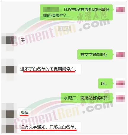 河北張家口某水泥企業(yè)負(fù)責(zé)人表示,進(jìn)不了“白名單”的企業(yè)冬奧期間停產(chǎn),水泥廠(chǎng)和商混站都停。