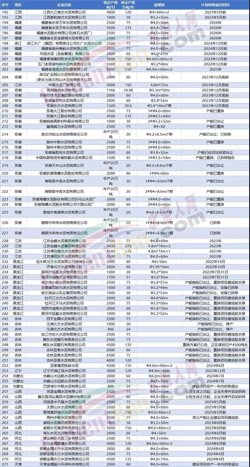 據(jù)水泥人網(wǎng)了解,為響應(yīng)國家淘汰落后產(chǎn)能、落后工藝,各大水泥企業(yè)積極退出高能耗低產(chǎn)能水泥熟料生產(chǎn)線,大規(guī)模的淘汰水泥行業(yè)落后產(chǎn)能。