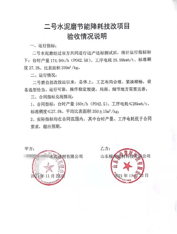 結(jié)束語(yǔ):山東棱角近三年來(lái)承接了山東某公司100萬(wàn)噸/年水泥粉磨站EPC工程、云南某公司2#水泥磨系統(tǒng)節(jié)能降耗技改EPC工程,在項(xiàng)目初設(shè)、設(shè)備選型、圖紙?jiān)O(shè)計(jì)、土建施工、設(shè)備安裝、非標(biāo)制安、生產(chǎn)調(diào)試等,把控項(xiàng)目的各個(gè)階段,安全施工、嚴(yán)把質(zhì)量、緊扣工期節(jié)點(diǎn),均超額完成項(xiàng)目預(yù)期指標(biāo),向業(yè)主遞交了滿意答卷,展現(xiàn)了山東棱角建材科技有限公司從設(shè)計(jì)、建設(shè)到調(diào)試“一條龍”綜合服務(wù)的優(yōu)異能力。