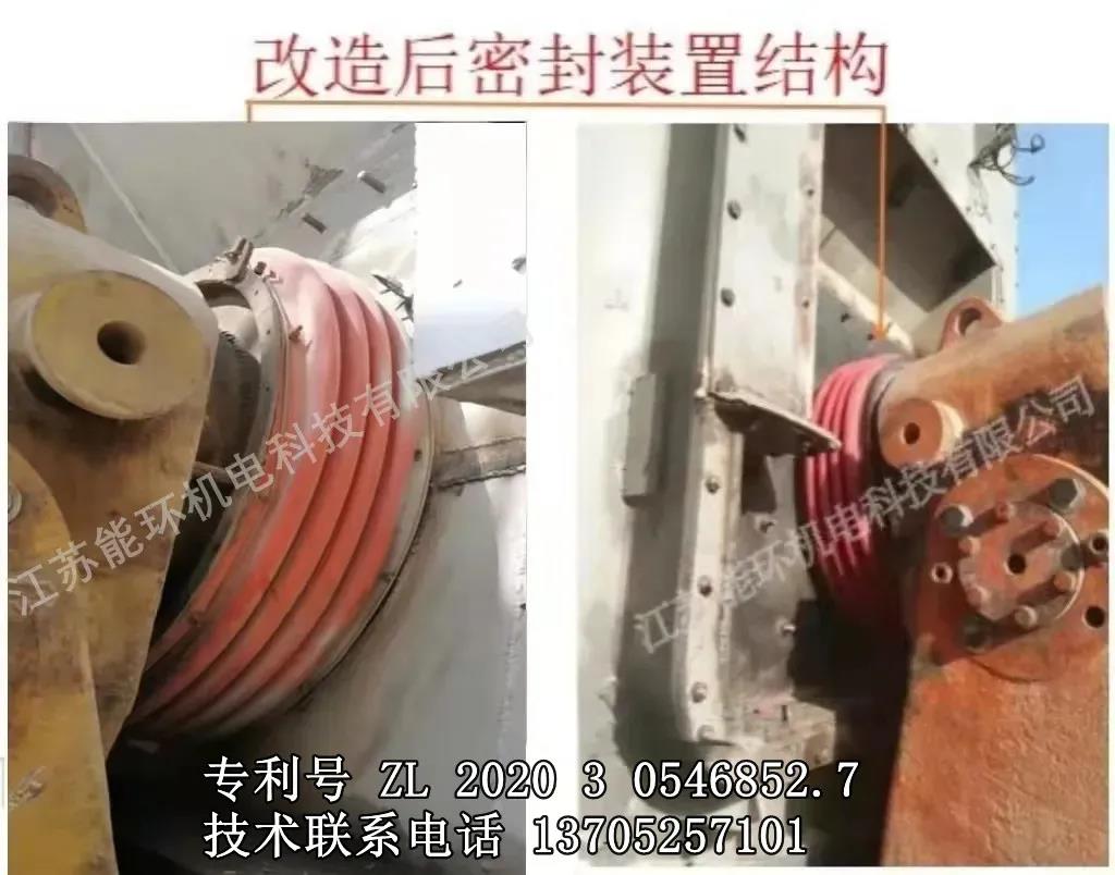 針對(duì)該水泥企業(yè)立磨磨輥的密封情況,江蘇能環(huán)采用具有其專利技術(shù)的磨輥門密封裝置對(duì)該水泥企業(yè)實(shí)施技術(shù)改造,改造后的磨輥密封具有以下特點(diǎn):