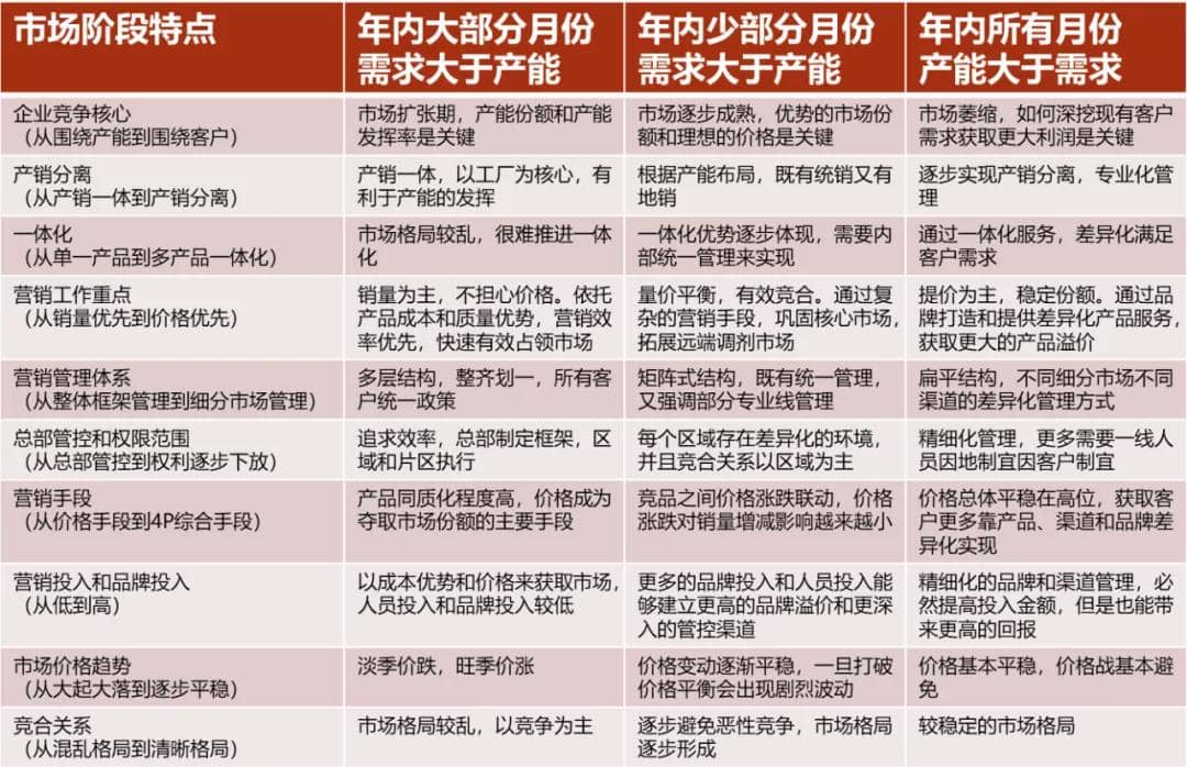 ●營銷戰(zhàn)術(shù)落地層面,包括4P方面的價(jià)格策略、客戶和渠道策略、產(chǎn)品策略以及品牌策略等,還有與工廠協(xié)作方面的產(chǎn)銷平衡和計(jì)劃管理等等。