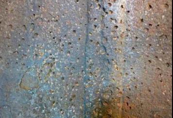 在殼體金屬表面產(chǎn)生大量點(diǎn)蝕坑,是氯離子腐蝕最主要的腐蝕特征。殼體應(yīng)力集中的區(qū)域,Cl-的存在還會(huì)加速應(yīng)力腐蝕的發(fā)展,使得殼體基材快速斷裂失效。夾角等細(xì)小縫隙區(qū)域,Cl-會(huì)加速縫隙腐蝕,快速破壞殼體基材。