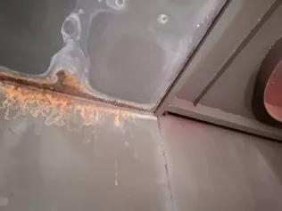 硫酸氫銨具有較強(qiáng)的吸附性、粘性和吸濕性,附著在殼體壁板表面后吸附粉塵、水分以及更多的腐蝕物質(zhì),使得附著點(diǎn)腐蝕加速,形成大量腐蝕產(chǎn)物。硫酸氫銨腐蝕典型的特征為腐蝕產(chǎn)物形成密集腐蝕堆,外觀表象多為暗黃色及灰黃色,且周圍分布有白色結(jié)晶鹽。