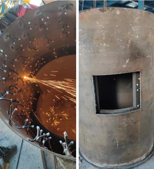 不久前,河北某水泥企業(yè)的下料管在運(yùn)行過程中由于結(jié)皮影響系統(tǒng)的通風(fēng),使阻力增大,不僅使能耗上升,而且結(jié)皮嚴(yán)重造成堵塞時,有時被迫停窯處理,嚴(yán)重影響經(jīng)濟(jì)效益。為此,該水泥企業(yè)將南極星微晶管應(yīng)用于其下料管內(nèi)部,現(xiàn)場施工圖片如下: