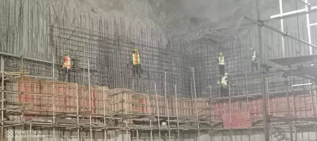 1#、2#破碎硐室是整個(gè)開拓系統(tǒng)工程的“咽喉”,上連主礦倉,下連皮帶輸送平硐,其施工質(zhì)量和進(jìn)度對整個(gè)開拓系統(tǒng)工程至關(guān)重要。破碎硐室圍巖性質(zhì)較差,且斷面大,高度高,凈高度達(dá)25米,對硐室開挖和支護(hù)帶來很大困難;破碎硐室后期腳手架搭設(shè)量大,鋼筋制作、綁扎量大,模板工程量大,混凝土澆筑量大,結(jié)構(gòu)復(fù)雜,且作業(yè)空間受限,給土建施工帶來極大的挑戰(zhàn)。對于1#、2#破碎硐室的施工,為保證安全、質(zhì)量和進(jìn)度,項(xiàng)目部多次組織圖紙會審,認(rèn)真分析每個(gè)施工環(huán)節(jié),在施工過程中合理安排施工順序,加強(qiáng)組織協(xié)調(diào),增開措施巷道,有效地保證了破碎硐室的順利施工。