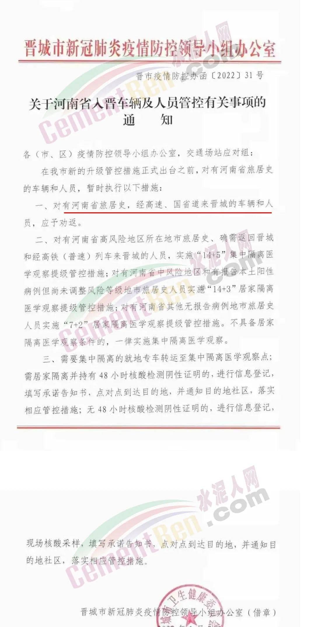 晉城市疫情防控辦發(fā)布從嚴從緊升級管控措施。禁止河南省來往晉城的縣鄉(xiāng)村級道路通行。勸返有河南省旅居史,經(jīng)高速、國省道和高鐵(普速)列車來晉城的外省車輛及人員。熔斷河南省往返晉城的貨運物流、冷鏈物流、公路客運(包括出租車、網(wǎng)約車、順風(fēng)車、團隊包車等)業(yè)務(wù)。