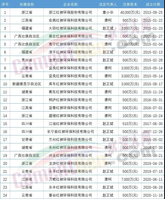 從上述數(shù)據(jù)可見(jiàn)紅獅環(huán)??萍计髽I(yè)成立日期最早為2013年, 大部分企業(yè)成立日期在2015年至2018年之間。同樣是利用現(xiàn)在生產(chǎn)線建設(shè)協(xié)同處置項(xiàng)目,紅獅水泥部分項(xiàng)目屢屢受阻。