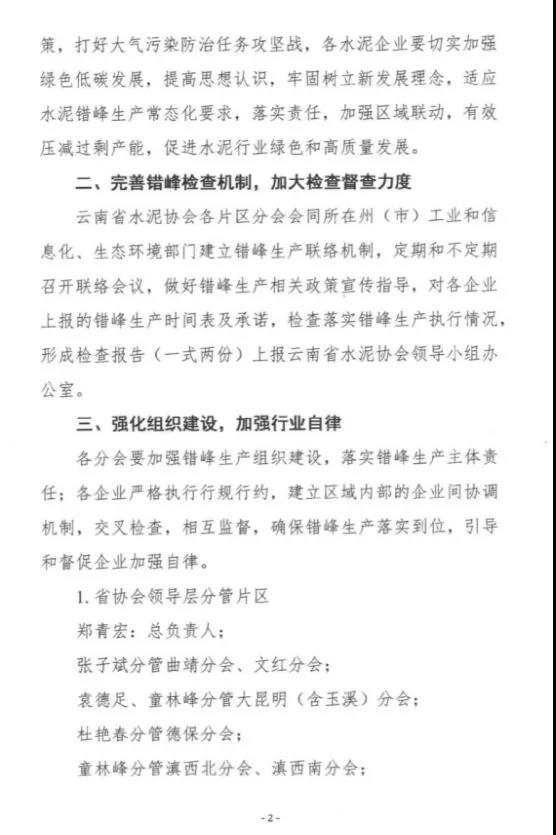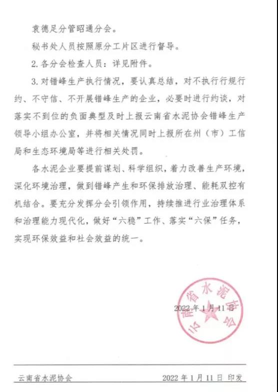 日前,云南省水泥協(xié)會發(fā)布《關于做好2022年錯峰生產(chǎn)檢查的通知》稱,為深入貫徹做好水泥常態(tài)化錯峰生產(chǎn),要求完善錯峰檢查機制,加大了檢查力度,落實責任,各片區(qū)分會建立錯峰生產(chǎn)聯(lián)絡機制。