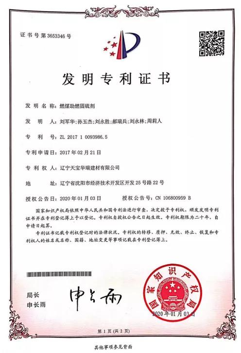 燃煤助燃固硫劑為遼寧天寶的專利產(chǎn)品,據(jù)了解,用戶使用 TB-JMJ 燃煤助燃固硫劑系列產(chǎn)品可使噸熟料實(shí)物煤耗(或標(biāo)準(zhǔn)煤耗)降低 2~5%。