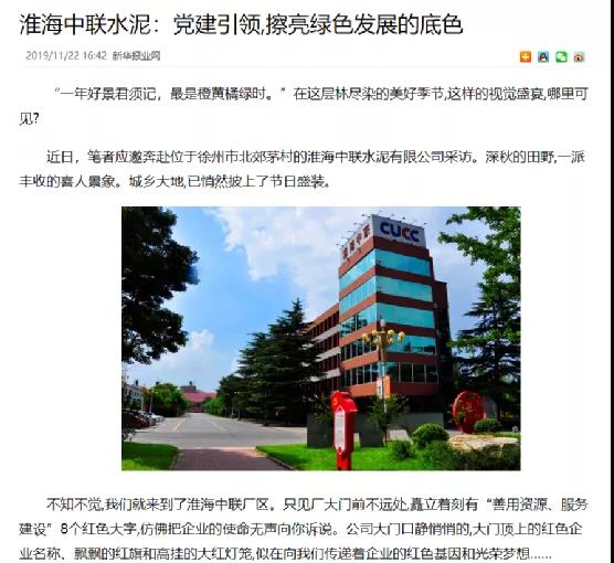 企業(yè)歷經(jīng)四十多年的發(fā)展,已經(jīng)是一個現(xiàn)代化企業(yè)。許多媒體都曾報道過淮海中聯(lián)的先進經(jīng)驗,《新華日報》曾報道淮海中聯(lián)奮力打造一流水泥企業(yè)紀實;《中國環(huán)境報》曾刊登《打贏藍天保衛(wèi)戰(zhàn),淮海中聯(lián)沖鋒在前》,都是介紹淮海中聯(lián)的先進典型經(jīng)驗。
