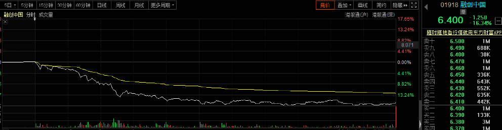 近日,合同銷售金額近6000億元的融創(chuàng)中國突然出現(xiàn)股債雙殺!開盤后就一路下殺,盤中跌幅超過17%,債券方面多筆殺跌,境內債“21融創(chuàng)03”跌10%,美元債“SUNAC 7 1/2 02/01/24”等跌幅超過6%。
