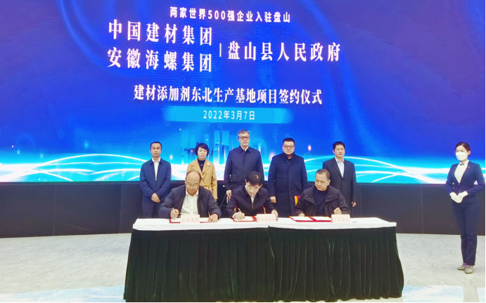 2022年3月7日下午,安徽海螺新材料科技有限公司與中國(guó)建材下屬北方水泥有限公司、海南清源企業(yè)管理中心簽署《盤錦海中新材料科技有限公司合資協(xié)議》。