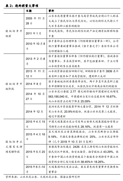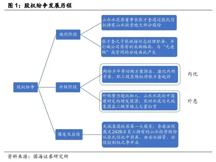 回顧山水水泥的股權紛爭過程,大致可以分為端倪、升級、爆發(fā)及后續(xù)發(fā)酵三個階段。