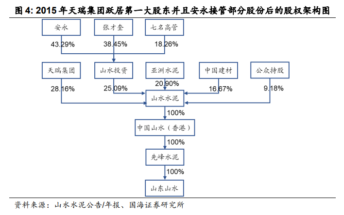 2015年4月15日天瑞集團所持有的山水水泥股份達到28.16%,躍居山水水泥第一大股東。