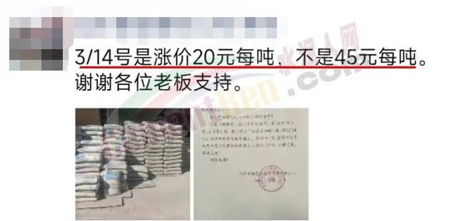 企業(yè)銷售負(fù)責(zé)人連發(fā)多份通知提示,3月14日是漲20元/噸,不是45元/噸。