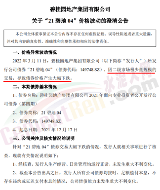 繼恒大“爆后”后,連續(xù)五年坐上房企銷冠的“宇宙第一房企”碧桂園近期也遭遇了“黑天鵝”壓頂。3月13日晚間,碧桂園公告顯示,碧桂園地產(chǎn)發(fā)行的“21碧地04”,因二級市場極少量規(guī)模的交易,導(dǎo)致債券價格產(chǎn)生大幅下跌。