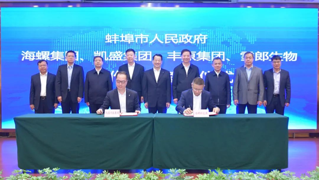 當(dāng)天上午,蚌埠市人民政府、海螺集團(tuán)、中建材玻璃新材料研究總院戰(zhàn)略合作協(xié)議,蚌埠市人民政府、海螺集團(tuán)、豐原集團(tuán)、雪郎生物戰(zhàn)略合作協(xié)議分別簽署。海螺集團(tuán)與凱盛科技集團(tuán),安徽自貿(mào)試驗(yàn)區(qū)蚌埠片區(qū)管委會與安徽國貿(mào)集團(tuán)分別進(jìn)行了簽約。