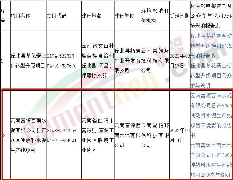 同日,云南省生態(tài)環(huán)境廳發(fā)布《關(guān)于2022年03月17日建設(shè)項(xiàng)目環(huán)境影響評(píng)價(jià)文件受理情況的公示》稱,