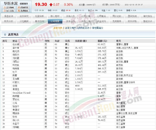 據(jù)水泥人網(wǎng)今年1月初消息,華新水泥2021年第六次臨時股東大會。通過了《關(guān)于調(diào)整公司非執(zhí)行董事長津貼的議案》。董事長徐永模的薪酬從216.2萬元下調(diào)至82.8萬元,直降133.2萬元。