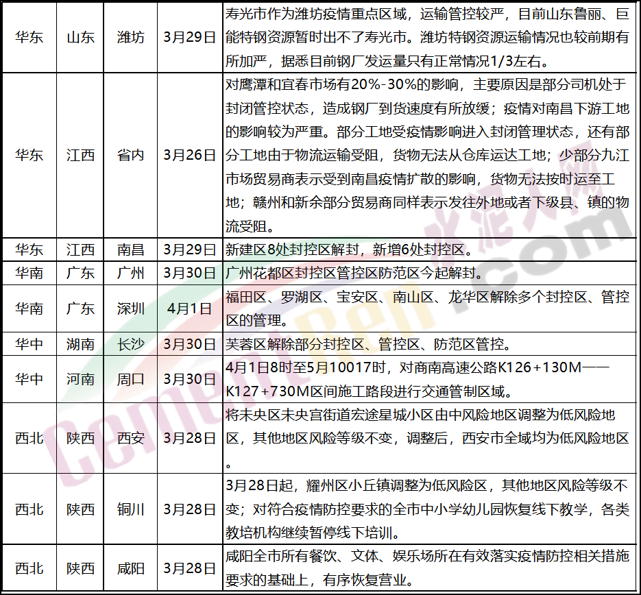 這輪疫情對(duì)水泥、砂石、混凝土等建材市場(chǎng)供需、物流影響較大。作為水泥消費(fèi)的核心市場(chǎng),長(zhǎng)三角區(qū)域市場(chǎng)受疫情影響幾乎處于“停擺”狀態(tài)。多城市地方政府對(duì)于貨車的流通采取了愈加嚴(yán)格的管控態(tài)勢(shì),且管控政策不斷變化,相應(yīng)的物流受到的影響也不斷增加。