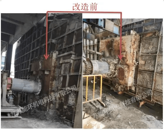 下面是某水泥廠窯頭窯門密封改造前與改造后的情況對比,解決了回轉(zhuǎn)窯窯頭窯門密封效果不佳引起的漏風、漏料、污染環(huán)境等情況。