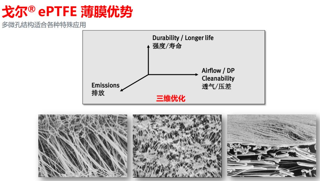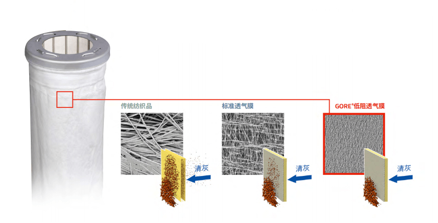 為此,水泥人網(wǎng)和上述水泥企業(yè)相關(guān)技術(shù)負(fù)責(zé)人展開了深入的技術(shù)交流,發(fā)現(xiàn)這幾家水泥廠在濾袋的選擇方面都不約而同的選擇了戈?duì)朑ORE®低阻濾袋。其中,有一位技術(shù)負(fù)責(zé)人對(duì)水泥人網(wǎng)表示,戈?duì)柟镜谋∧ぜ夹g(shù)和覆壓技術(shù)都是國際一流,不但在窯尾廢氣處理中應(yīng)用成功,在窯頭廢氣外理的成功案例也比比皆是。其最新推出的低阻濾袋更是采用了第5代ePTFE膜,具有以下出色性能: