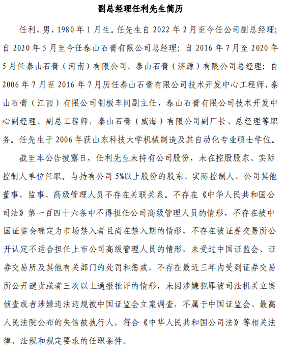 史可平、郝曉冬、楊正波、王帥、任利擔任副總經(jīng)理。
