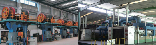 國鎂耐火擁有1700°C-1850℃超高溫隧道窯2條,鎂質(zhì)不定型耐火材料生產(chǎn)線1條,原料生產(chǎn)線2條,礦山1座,鎂碳磚生產(chǎn)線1條。充足的料倉及成熟的自動配料系統(tǒng)保證高精度配料;德國EIRICH高效強力混砂機,提高混料效能;世界先進的液壓機壓制磚坯,坯體均勻,尺寸精確。